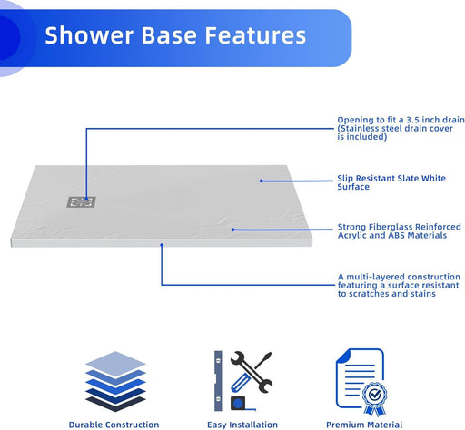 Daily NestDimensions: Measures 31.5”L x 47.3”W x 1.4”H, providing ample space for showering. High-Quality Material: Constructed from durable environme...