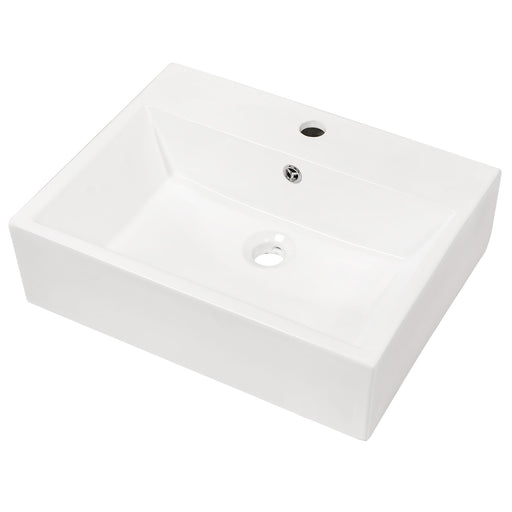 Modern Ceramic Rectangular Wall Mounted Bathroom Sink With Faucet Hole & Overflow