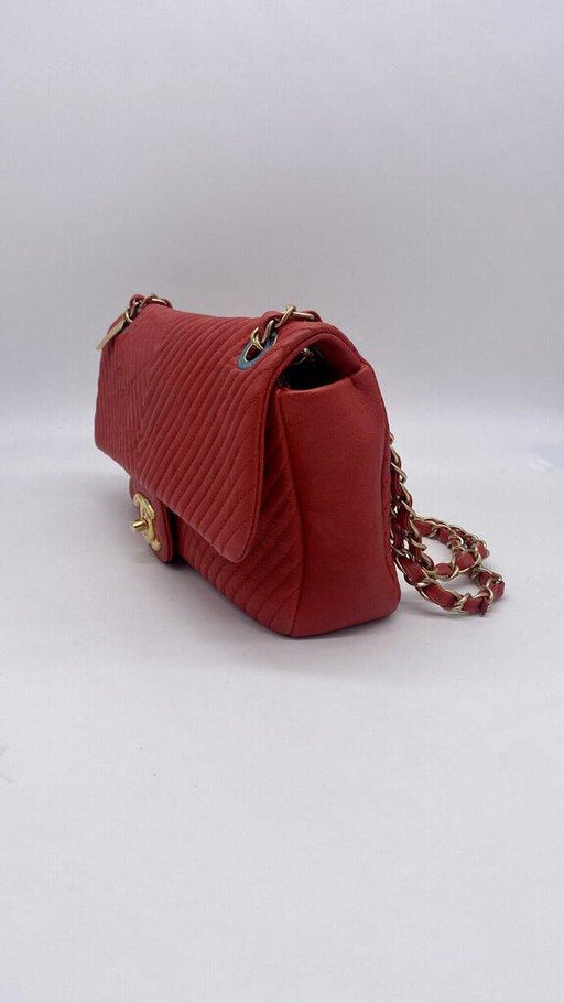 Consign FurnitureCHANEL RED CHEVRON FLAP