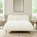 - Faux Boucle Upholstery: The bed is covered in faux sherpa-like boucle fabric, offering a cozy feel and adding an interesting texture to the piece.