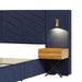 Queen Size Upholstered Bed Frame With Vertical Tufted Wingback Headboard, No Box Spring Needed - Retro Blue