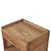 - Artisan Furniture Solid Wood Larissa T-Bar Open Bedside - The Larissa T-bar Open Beside will stand out in your interior thanks to its understated look and subtle originality. It has been constructed from 100% solid mango wood in an oak-ish finish. It features a T-bar handle and 1 drawer ensuring storage space to keep things close before bedtime, as well as 2 open slots.