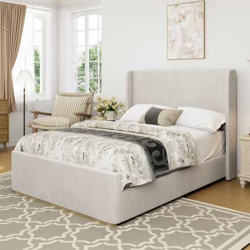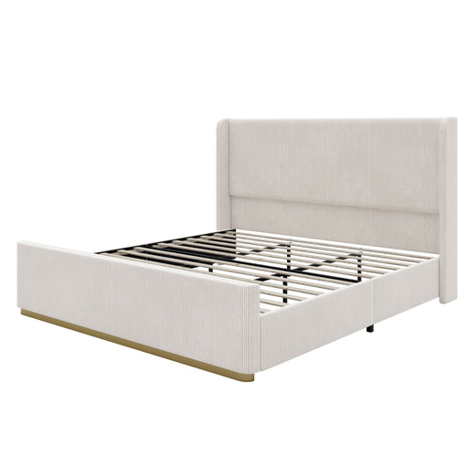 Original price $669.00Original price $669.00 - Original price $669.00Original price $669.00Current price $599.00$599.00 - $599.00Current price $599.00King Size Luxurious Corduroy Upholstered Bed Frame With Vertical Stripe Wingback Headboard And High Footboard - Light Gray
