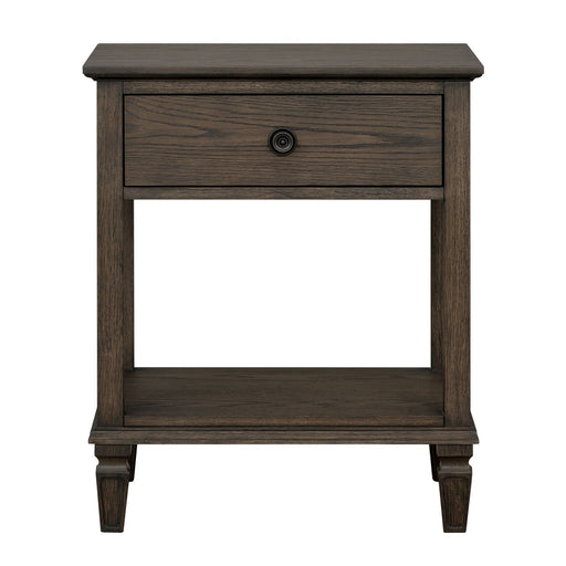 JLACollection: Part of the Lily Pond collection. Storage: Dark brown wood veneer nightstand with one drawer and a lower shelf. Drawer Detail: Feature...