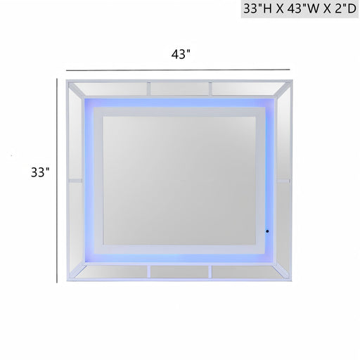 Global Furniture USALarge Scale Mirror: Provides a generous reflective surface for various uses. Sleek Silver Tone: Offers a modern and stylish aesthetic that complem...