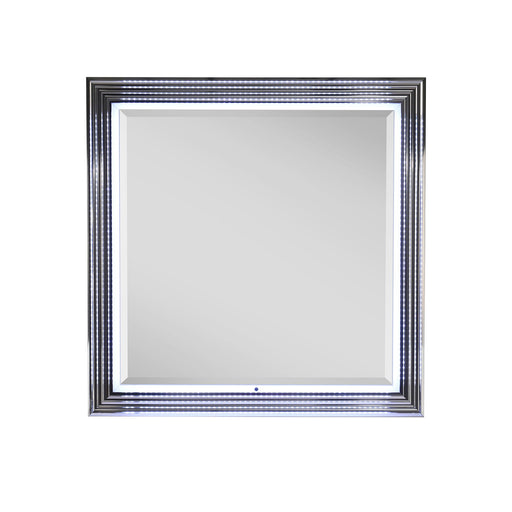 Global Furniture USASleek Design: Crafted with a sleek, deco-modern design for a contemporary touch. LED Lighting: Integrated LED accent lighting enhances the mirror'...