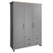 3 Door Storage Wardrobe With Cabinets And 2 Hanging Rods - Gray