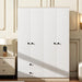 4 Door Wardrobe Closet With Drawers, Shelf, And Hanging Rod - White / Natural