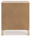 | Details | Made with engineered wood (MDF/particleboard/plywood) and decorative laminate for the right balance of affordability and durability, Two-tone finish (dry, light finish over replicated oak grain; light chevron pattern), Decorative laminate replicates natural or man-made material surfaces with consistent color, pattern and texture, Dark-colored hardware, 2 smooth-gliding drawers with ball-bearing side glides; vinyl-wrapped sides and back for durability, Assembly required | |