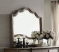 - Rich Wood Frame: The frame is crafted from rich wood with a veneer finish, providing depth and texture that complements the mirror's overall design.
