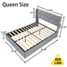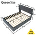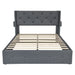 Queen Size Bed Frame With Lift Up Storage, Wingback Headboard And USB Ports - Light Gray