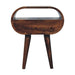 - Artisan Furniture California Walnut Circular Bedside with Open Slot - This round style bedside has been constructed from 100% solid mango wood and has one drawer with an open slot, perfect for storing or displaying any bits and pieces before bedtime. It has been constructed from 100% solid mango wood in a california walnut finish allowing its simple design to be partnered with any styles or finishes of furniture.