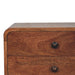 - Artisan Furniture Solid Wood Curved Nightstand, 2 drawer - Endlessly versatile, this curved bedside table makes a perfect stand for nibbles, drinks, or a lamp. It will prove handy all over your home and is made from 100% solid mango wood and has a fine finish. It has curved edges which will fit into any home/living space. It also comes with 2 drawers that come with shiny knobs and 4 Nordic style legs.