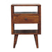 - Dante Chestnut Nightstand - The Dante Bedside Table is ideal for adding a contemporary style to any bedroom. This small side table is perfect for maximizing space while staying on trend. It is constructed from 100% solid mango wood in a chestnut finish and nordic style legs.