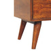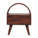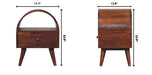 - Chestnut Dome Bedside - This bedside has been constructed from 100% solid mango wood and has a beautiful chestnut finish, it has been made with rounded top design with smooth edges, as well as a open slot and 1 drawer which feature a shiny brass knob, along with 4 Nordic style legs.