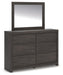 Find serene simplicity in the clean lines and dark neutral tones of this dresser with mirror. It’s a sincere approach to modern elegance, giving you high style at a great value. A sleek hardware-less design creates a fuss-free look. Short on storage? This dresser’s smooth-gliding drawers keep clothes and clutter neatly tucked away.