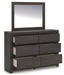 Details PCB3370B8: Includes headboard panel, headboard posts, footboard and rails, Made with engineered wood (MDF/particleboard/plywood) and decorative laminate for the right balance of affordability and durability , Dark charcoal finish over replicated oak grain, Decorative laminate replicates natural or man-made material surfaces with consistent color, pattern and texture, Foundation/box spring required, sold separately, Mattress available, sold separately, Assembly required, PCB3370B1: Includes dresser and mirror, Made with engineered wood (MDF/particleboard/plywood) and decorative laminate for the right balance of affordability and durability , Dark charcoal finish over replicated oak grain, Decorative laminate replicates natural or man-made material surfaces with consistent color, pattern and texture, Recessed hand grabs create hardware-less effect, 6 smooth-gliding drawers, Drawer interiors are lined with a faux linen laminate for a clean, finished look , Safety is a top priority, clothing storage units are designed to meet the most current standard for stability, ASTM F 2057 (ASTM International), Drawers extend out to accommodate maximum access to drawer interior while maintaining safety, Mirror attaches to back of dresser; can also be mounted on wall horizontally or vertically, Assembly required, PCB3370-92: Made with engineered wood (MDF/particleboard/plywood) and decorative laminate for the right balance of affordability and durability, Dark charcoal finish over replicated oak grain, Decorative laminate replicates natural or man-made material surfaces with consistent color, pattern and texture, Recessed hand grabs create hardware-less effect, 2 smooth-gliding drawers, Drawer interiors are lined with a faux linen laminate for a clean, finished look, 2 slim-profile USB-C charging ports, Power cord included; UL Listed, Assembly required,