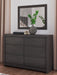 Details PCB3370B4: Includes headboard panel, headboard posts, storage footboard and rails, Made with engineered wood (MDF/particleboard/plywood) and decorative laminate for the right balance of affordability and durability , Dark charcoal finish over replicated oak grain, Decorative laminate replicates natural or man-made material surfaces with consistent color, pattern and texture, 2 smooth-gliding drawers in footboard, Foundation/box spring required, sold separately, Mattress available, sold separately, Assembly required, PCB3370B1: Includes dresser and mirror, Made with engineered wood (MDF/particleboard/plywood) and decorative laminate for the right balance of affordability and durability , Dark charcoal finish over replicated oak grain, Decorative laminate replicates natural or man-made material surfaces with consistent color, pattern and texture, Recessed hand grabs create hardware-less effect, 6 smooth-gliding drawers, Drawer interiors are lined with a faux linen laminate for a clean, finished look , Safety is a top priority, clothing storage units are designed to meet the most current standard for stability, ASTM F 2057 (ASTM International), Drawers extend out to accommodate maximum access to drawer interior while maintaining safety, Mirror attaches to back of dresser; can also be mounted on wall horizontally or vertically, Assembly required,