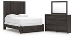 Fraluna Queen Panel Storage Bed with Mirrored Dresser