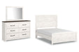 | Details | B1190B4: Includes headboard, footboard and rails, Made of engineered wood (MDF/particleboard) and decorative laminate, White rustic finish with replicated cedar grain, Foundation/box spring required, sold separately, Mattress not included, sold separately, Assembly required, Bed is compatible with an adjustable base, B1190B1: Includes dresser with mirror, Made of engineered wood (MDF/particleboard) and decorative laminate, White rustic finish with replicated cedar grain, Rustic gray planked replicated oak grain with authentic touch, 6 smooth-gliding drawers with faux linen lining, Large scale dark colored handles, Mirror attaches to back of dresser, Assembly required, | |