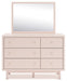 Details B1323-87: Made with durable engineered wood frame covered in a creamy white boucle, Polyester upholstery, ¼" bolts (not included) are needed to attach headboard to your existing bed frame, Minor assembly required, B1323B1: Includes dresser and mirror, Made with engineered wood (MDF/particleboard/plywood) and decorative laminate for the right balance of affordability and durability, Subtle blush finish over replicated pecan wood grain, Decorative laminate replicates natural or man-made material surfaces with consistent color, pattern and texture, Champagne colored knobs, 6 smooth-gliding drawers , Drawer interiors are lined with a faux linen laminate for a clean, finished look, Mirror can be attached to back of dresser or wall mounted horizontally or vertically, Safety is a top priority, clothing storage units are designed to meet the most current standard for stability, ASTM F 2057 (ASTM International) , Drawers extend out to accommodate maximum access to drawer interior while maintaining safety, Minor assembly required,