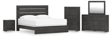 Hollivern King Panel Bed with Mirrored Dresser, Chest and Nightstand