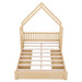 Queen Size House Platform Bed With Guardrail And 2 Drawers - Natural
