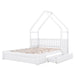 House Style Queen Size Platform Bed With Guardrail And 2 Drawers - White
