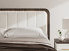 Looking to make a subtly striking statement in your bedroom? We've got you covered. This king upholstered bed’s sophisticated two-tone treatment marries a warm brown finish over replicated walnut grain with a white finish. Highlighted with a wonderful white faux leather, the headboard features warm ambient lighting for that cozy feeling we all love at bedtime. Rounded corners radiate an air of modern panache. It’s a master class in contemporary yet comfortable character.
