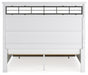 | Details | B844B4: Includes panel headboard, storage footboard, rails and roll slats, Footboard made with hardwood solids, MDF substrates and butcher block oak veneer, Headboard and rails made with hardwood solids and MDF substrates, White finish, Headboard with inset black metal barn sash, 2 drawers in footboard with fully finished interior, dovetail construction and ball-bearing side glides, Pulls with matte black finish, Bed does not require a foundation/box spring, Mattress available, sold separately, Assembly required, B844B1: Includes dresser and mirror, Made with hardwood solids, MDF substrates and butcher block oak veneer, Dresser with 2-tone finish (white finish; butcher block oak veneer with natural finish), Pulls with matte black finish, 10 spacious drawers with fully finished interiors (top drawers felt lined), dovetail construction and ball-bearing side glides , Drawers with inset picture fronts, Mirror attaches to back of dresser, B844-93: Made with hardwood solids, MDF substrates and butcher block oak veneer, 2-tone finish (white finish; butcher block oak veneer with natural finish), Pulls with matte black finish, 3 spacious drawers with fully finished interiors (top drawers felt lined), dovetail construction and ball-bearing side glides, 110V power supply with dual USB charging ports, Power cord included; UL Listed, Drawers with inset picture frame fronts, | |