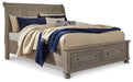 Lettner King Sleigh Bed with 2 Storage Drawers with Mirrored Dresser