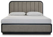 Rowanbeck King Upholstered Panel Bed with Mirrored Dresser