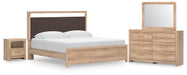 Kinlanni King Upholstered Platform Bed, Dresser, Mirror and Nightstand