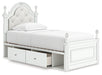 Kozlani Twin Upholstered Panel Storage Bed, Dresser and Mirror