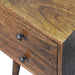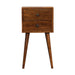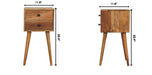 - Mini 2 Drawer Nightstand - This beautifully designed bedside is constructed from 100% solid mango wood and has a fine finish. It features 2 small drawers giving the piece extra character and dimension. It has 4 Scandinavian-style legs to modernize your home and can be fitted in a tight compact space to go in any type of home interior.