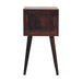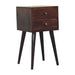 - Mini 2 Drawer Light Walnut Nightstand - This beautifully designed nightstand is constructed from 100% solid mango wood and has a fine light walnut finish. It features 2 small drawers giving the piece extra character and dimension. It has 4 Scandinavian-style legs to modernize your home and can fit into a tight compact space to go in any type of home interior.