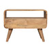 - Mini Curved Oak-ish Media Unit - Our mini solid timber media unit is expertly constructed from 100% solid mango wood in a lovely oak-ish finish. Some features include 2 drawers that come with a shiny knob, a large open slot to place any books, photo frames, ornaments, and 4 Nordic-style legs. This petite product is part of Recession Collection.