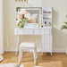 Modern Makeup Vanity Desk With LED Lights & Mirror 4 Drawer Dressing Table Set Space Saving For Bedroom - White