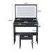 Makeup Vanity Set With Power Outlet, Hair Dryer Holder, And Adjustable Lighting - Black