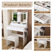 Modern Makeup Vanity Set With Power Outlet, Hair Dryer Holder, And Adjustable Lighting