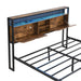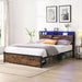 Modern Full Size Metal Platform Bed Frame With Wooden Headboard USB Charging Station Storage Drawers LED Lights - Black / Brown