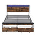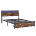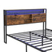 Modern Queen Size Metal Platform Bed Frame With Wooden Headboard USB Charging LED Lights And Storage Drawers - Black / Brown