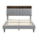 Modern Queen Size Upholstered Platform Bed Frame With Button Tufted Linen Fabric Headboard And USB Ports - Light Gray