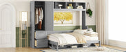 Queen Size Murphy Wall Bed With Closet And Drawers - Gray