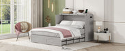 Queen Size Murphy Wall Bed With Drawer And A Set Of Sockets & USB Ports, Pulley Structure Design - Gray