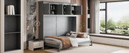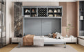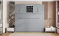Queen Size Murphy Wall Bed With Top Cabinets & Wine Rack - Gray