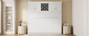 Queen Size Murphy Wall Bed With Top Cabinets & Wine Rack - White