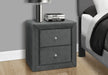 Nightstand, Storage Drawer, Upholstered, Elegant Design, Transitional - Gray