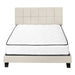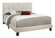 - Elegant Design: This low-profile platform queen bed frame is upholstered in a beautiful beige linen-look fabric. The padded headboard features an elegant panel button tufted design that adds a touch of sophistication to any bedroom.