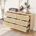 Rattan 6 Drawers Chest Of Dressers For Bedroom, Modern 6 Drawer Dresser, Wide Chest Of Drawers With Wood Handles, Rattan Dresser Storage Cabinet For Living Room, Bedroom, Hallway - Natural Wood / Oak